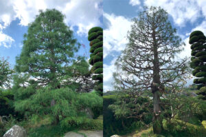 小透かし剪定といって枝先を間引いて、その木の形を自然に生かした清涼感溢れる仕立て方法も可能です。