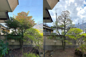 尚、数年剪定していない樹木や病害虫により生育が衰えている樹木につきましてはこちらの判断により剪定させていただきます。 - チェーンソー等の音の大きな機械工具を使用する際は午前9時以降とし、午前8時〜9時の間は静かな充電式チェーンソーなどで対応いたします。